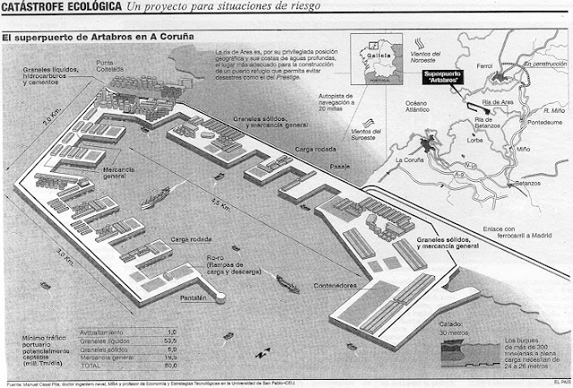 A raíz de la catástrofe del Prestige, los ciudadanos gallegos, españoles y europeos han vuelto a reclamar la construcción en la costa septentrional española de un puerto refugio para evitar nuevas devastaciones. También piden inversiones que permitan paliar los efectos producidos por el desastre ecológico. Un puerto refugio implica no sólo un lugar adonde llevar buques siniestrados para evitar su zozobra y/o la contaminación de las costas, sino que es el destino del transporte marítimo de toda carga peligrosa o contaminante porque los ciudadanos no quieren peligros ante las ciudades. Debido a sus condiciones geoestratégicas, todos volvieron la vista hacia Galicia, tanto por ser la zona de la península con más tráfico marítimo como la de mayor dureza del mar. Por el corredor del noroeste pasan unos 45.000 buques al año, de los que un 13% son portadores de mercancías peligrosas o contaminantes, ya que soporta el 70% del tráfico mundial de petróleo. Es decir, diariamente pasan unos 16 barcos con alto riesgo.